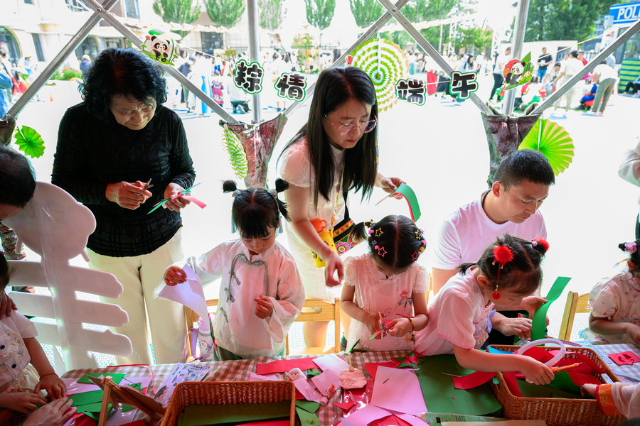 活動現場,家長與幼兒共同感受六一兒童節(jié)的歡樂氛圍與端午節(jié)的民俗魅力。