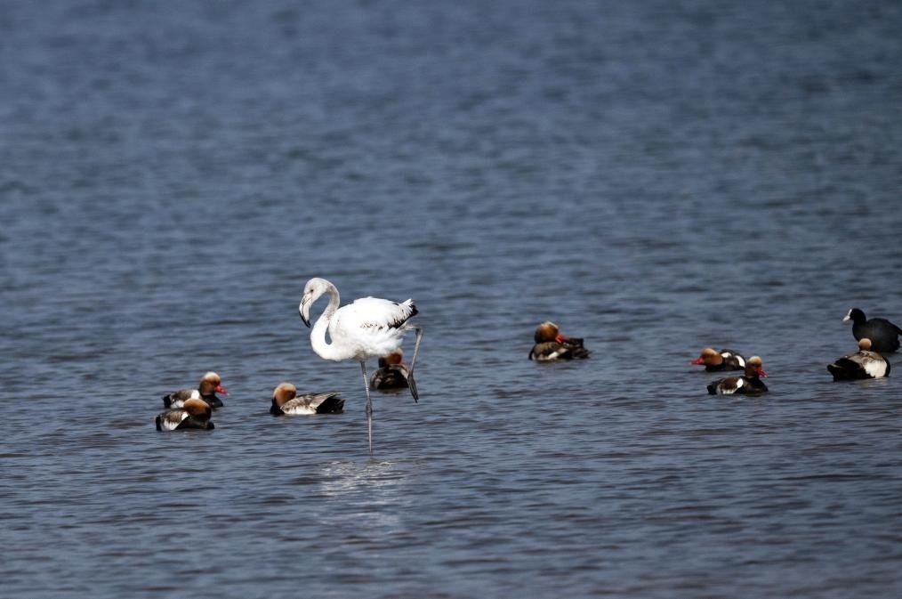 大紅鸛又稱大火烈鳥,主要生活在鹽水、淡水棲息地,喜歡結(jié)群生活,主要分布于熱帶、亞熱帶地區(qū),已被列入國家保護的有益的或者有重要經(jīng)濟、科學(xué)研究價值的陸生野生動物名錄。陳峰說:“大紅鸛在烏梁素海屬于‘迷鳥’,實屬罕見。我們已安排專人在湖區(qū)周邊實行重點巡查,防止人類活動干擾大紅鸛的棲息,給它營造出適宜、安全的棲息環(huán)境?!?/p>