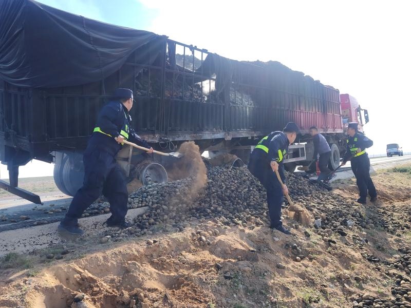 “叮鈴鈴、叮鈴鈴......”9月16日上午9時(shí)許,一聲清脆的警鈴讓阿拉善邊境管理支隊(duì)烏力吉邊境派出所的民警們的心為之一驚,有群眾報(bào)警稱(chēng)在轄區(qū)S218省道上,一輛滿(mǎn)載土豆的重型半掛牽引車(chē)起火自燃了。