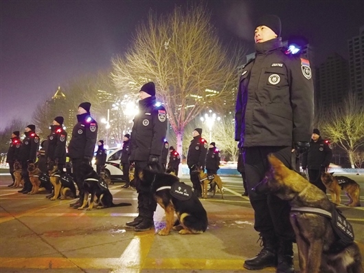 2020年12月31日19時(shí)許,首批警犬馴導(dǎo)員攜帶20條警犬亮相街頭,在轄區(qū)人流密集場(chǎng)所、購物商圈、公交站點(diǎn)及重點(diǎn)單位首次執(zhí)行巡邏任務(wù),開啟警犬巡邏管控警務(wù)新模式。
