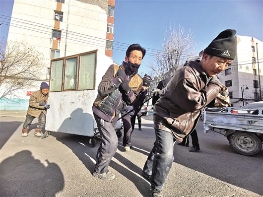 “由于您的車長期占用小區(qū)公共資源,給小區(qū)居民出行帶來不便。請(qǐng)您看到通知后,在3日內(nèi)自行將您的車挪出小區(qū),如逾期未挪走,我們將您的車做無主僵尸車報(bào)相關(guān)單位統(tǒng)一處理”。1月15日,黃河西路街道友誼19#四社區(qū)將通知貼在一輛鐵皮車輛醒目的位置,一直無人將車輛挪走。圖為1月18日,友誼19#四社區(qū)的工作人員將該“僵尸車”清走時(shí),車主突然現(xiàn)身。社區(qū)工作人員耐心細(xì)致地與該車主交流后,車主表示配合。文/圖 李強(qiáng)