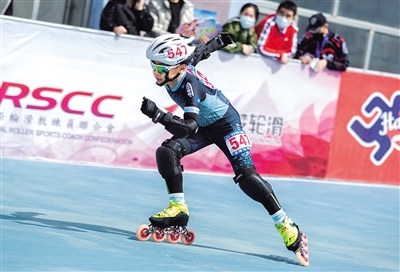 運(yùn)動員在速度輪滑比賽中。(包頭市體育局提供)