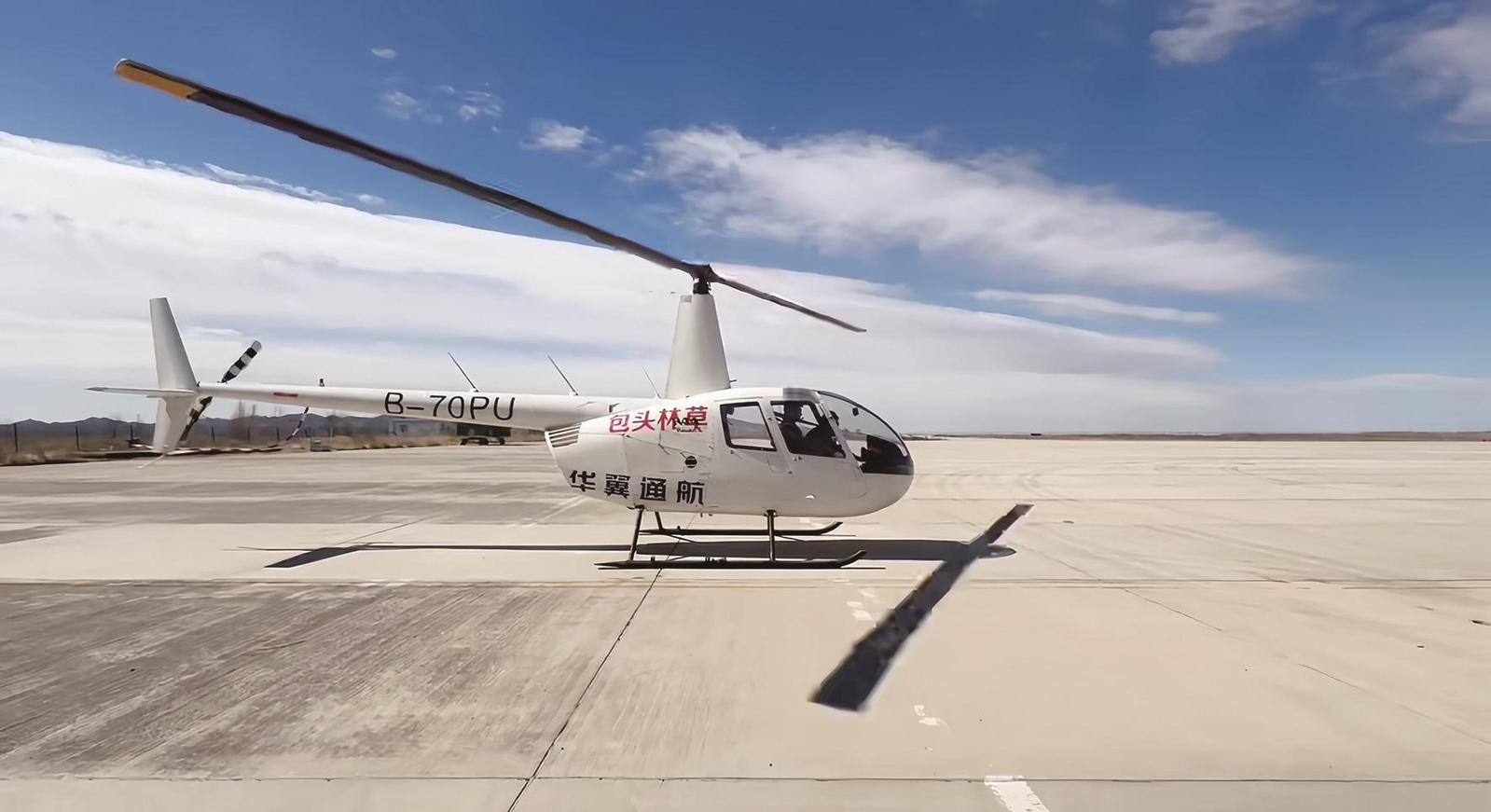 羅賓遜R-44直升機(jī)蓄勢(shì)待發(fā)。