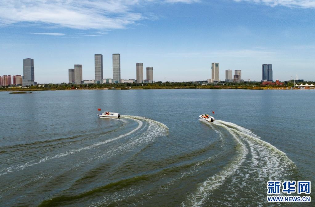 10月14日拍攝的伊金霍洛旗環(huán)城水系景色(無(wú)人機(jī)照片)  。