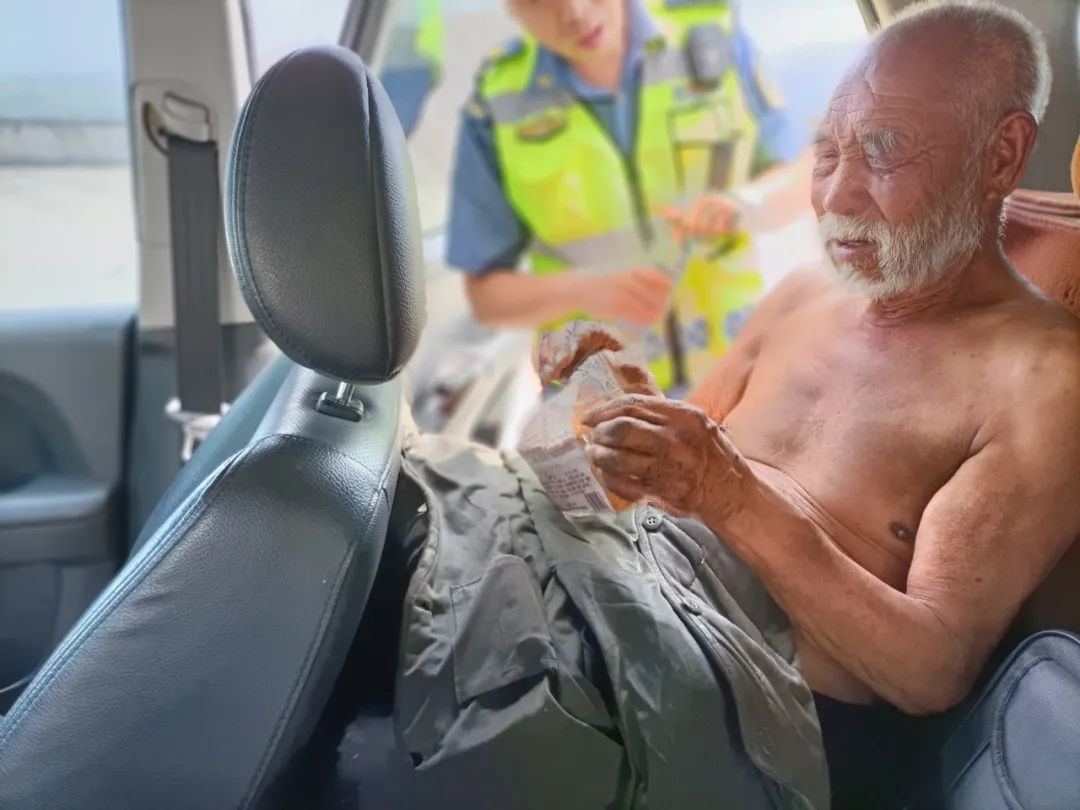 7月27日10時(shí)10分許,內(nèi)蒙古自治區(qū)公路路政執(zhí)法監(jiān)察總隊(duì)呼和浩特支隊(duì)第三大隊(duì)的李超和張鵬飛在呼北高速公路巡查過(guò)程中,發(fā)現(xiàn)一位老人光著膀子獨(dú)自走在高速公路中間,快速行駛的車輛不時(shí)從老人身邊呼嘯而過(guò),稍有不慎就可能引發(fā)重大道路交通事故。