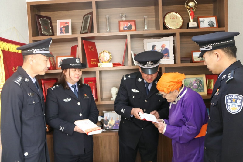 5月6日上午,民警們手捧鮮花來到都貴瑪老人家。一進(jìn)家門,便為都貴瑪老人送上了節(jié)日的祝福。民警們與都貴瑪老人嘮起了家常,詳細(xì)詢問老人的身體狀況和生活情況。大家你一言,我一語,聊著聊著,就談到了當(dāng)前開展的黨史學(xué)習(xí)教育。民警們把自己的學(xué)習(xí)體會和收獲一一向都貴瑪老人作了匯報。都貴瑪老人說,自己也通過觀看《新聞聯(lián)播》了解到國家十四五開局之年和全黨開展黨史學(xué)習(xí)教育的相關(guān)內(nèi)容。特別是看到民警們帶來的黨史書籍時,都貴瑪老人和大家講述了他們那一代人如何利用蒙文版書籍學(xué)習(xí)黨章黨史的故事,再次回顧了習(xí)近平總書記為她授予“人民楷模”國家榮譽(yù)稱號獎?wù)聲r的自豪和激動。
