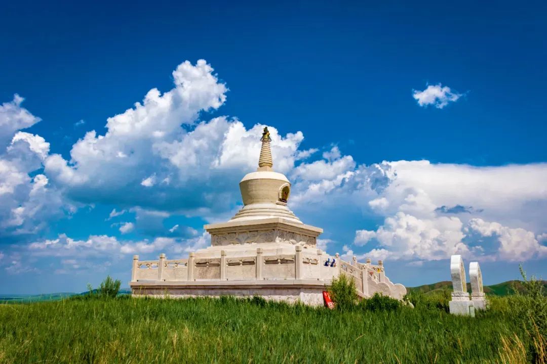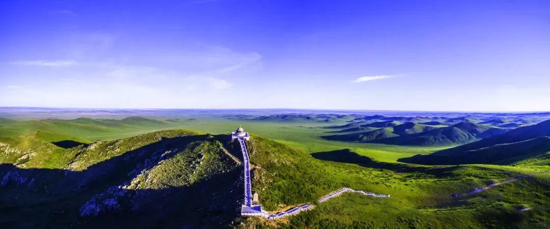 瞭望山上遙望草原,層層山巒望不斷。游客可徒步登山,有寬厚的臺階直通山頂,當你登上最高點,感受四野空曠的幽靜,仿佛真的可以瞭望千里外的風光。