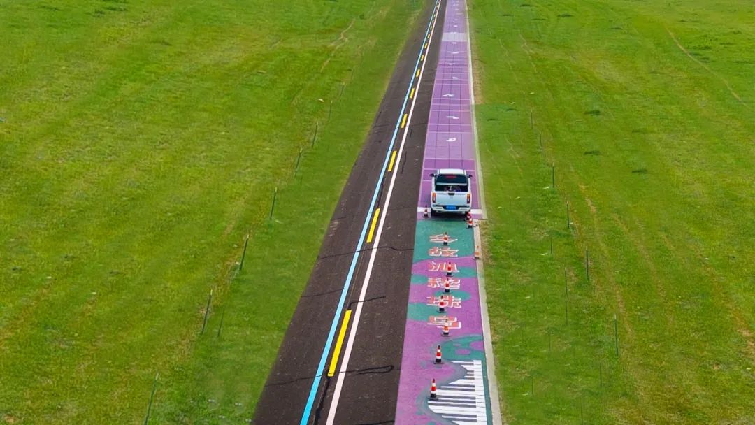 此外,西烏旗草原“99號公路”新增了14.292公里騎行路,鋪就以“烏珠穆沁”音譯內涵(摘葡萄的人)為靈感的葡萄紫路面,是騎行愛好者與游客打卡體驗草原風情的絕佳之地。草原“99號公路”起點的心形停車服務區(qū)預計2025年7月投用,發(fā)光Logo項目同步啟動。