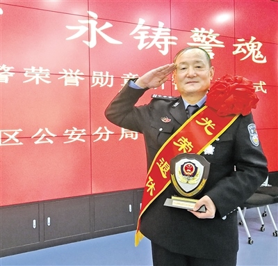 1月8日,在首個中國人民警察節(jié)到來之際,呼和浩特市玉泉區(qū)公安分局舉行“不忘初心 永鑄警魂”——授予退休民警榮譽(yù)勛章和新警入警宣誓儀式。今年60歲的楊建恒神采飛揚(yáng)、豪情依舊,當(dāng)他身著警服、步履鏗鏘地接過退休民警榮譽(yù)勛章時,如獲至寶。