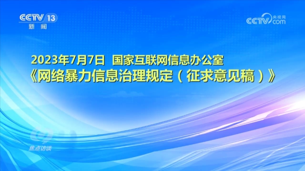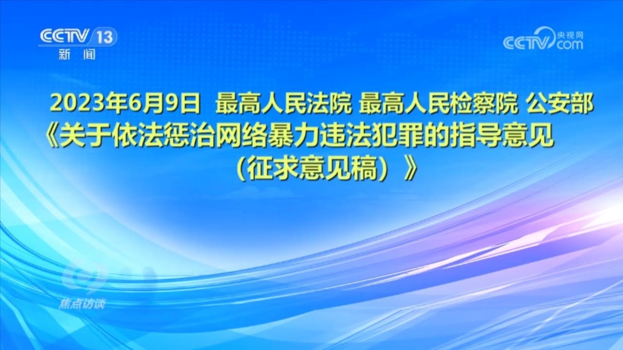 央視網(wǎng)消息(焦點訪談):俗話說“舌上有龍泉,殺人不見血”。網(wǎng)絡(luò)暴力不同于現(xiàn)實中的拳腳相加,但是這些在網(wǎng)絡(luò)空間中用文字、圖片等方式進(jìn)行的傷害和侮辱,一樣可以對當(dāng)事人的現(xiàn)實生活產(chǎn)生惡劣的影響,讓當(dāng)事人的心靈“流血”。在傷害當(dāng)事人的同時,網(wǎng)絡(luò)暴力行為也嚴(yán)重污染了互聯(lián)網(wǎng)環(huán)境,影響社會和諧穩(wěn)定。近日,國家互聯(lián)網(wǎng)信息辦公室起草了《網(wǎng)絡(luò)暴力信息治理規(guī)定(征求意見稿)》,向社會公開征求意見;同樣是針對網(wǎng)絡(luò)暴力,在6月,最高人民法院、最高人民檢察院、公安部起草了《關(guān)于依法懲治網(wǎng)絡(luò)暴力違法犯罪的指導(dǎo)意見(征求意見稿)》,面向社會公開征求意見。治理網(wǎng)絡(luò)暴力這顆“毒瘤”,營造良好生態(tài)勢在必行。