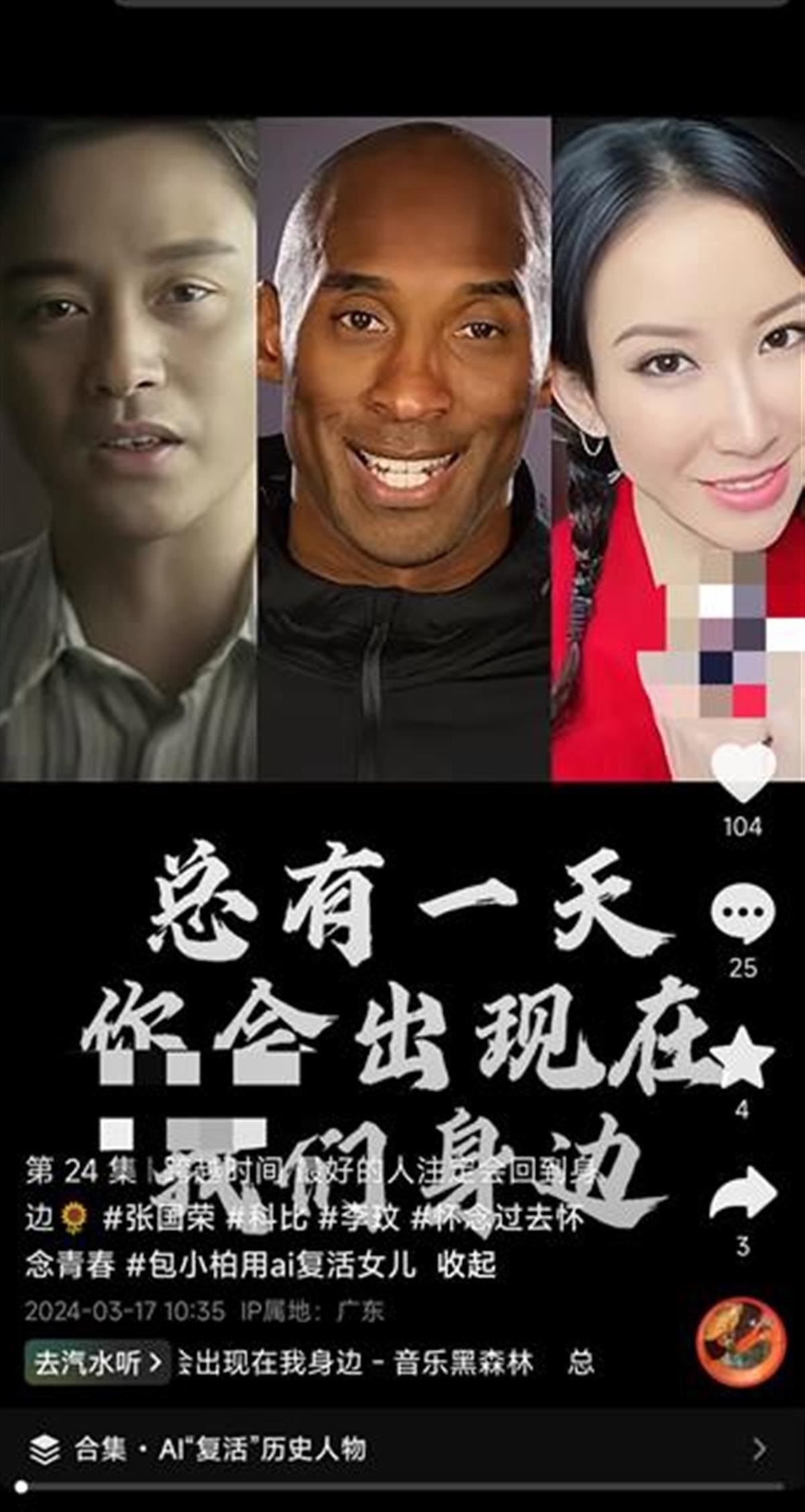 在社交平臺,類似的“AI復活師”賬號仍在活躍。這些賬號通過發(fā)布科比、李玟、張國榮等已逝名人的AI視頻吸引觀眾,并在簡介中聲稱可以通過AI技術定制數(shù)字人、克隆聲音、修復照片,還能“復活”已逝親人,定制他們的音頻視頻。目前,部分“AI復活師”的視頻已被平臺標注“內(nèi)容疑似AI生成,請謹慎甄別”。