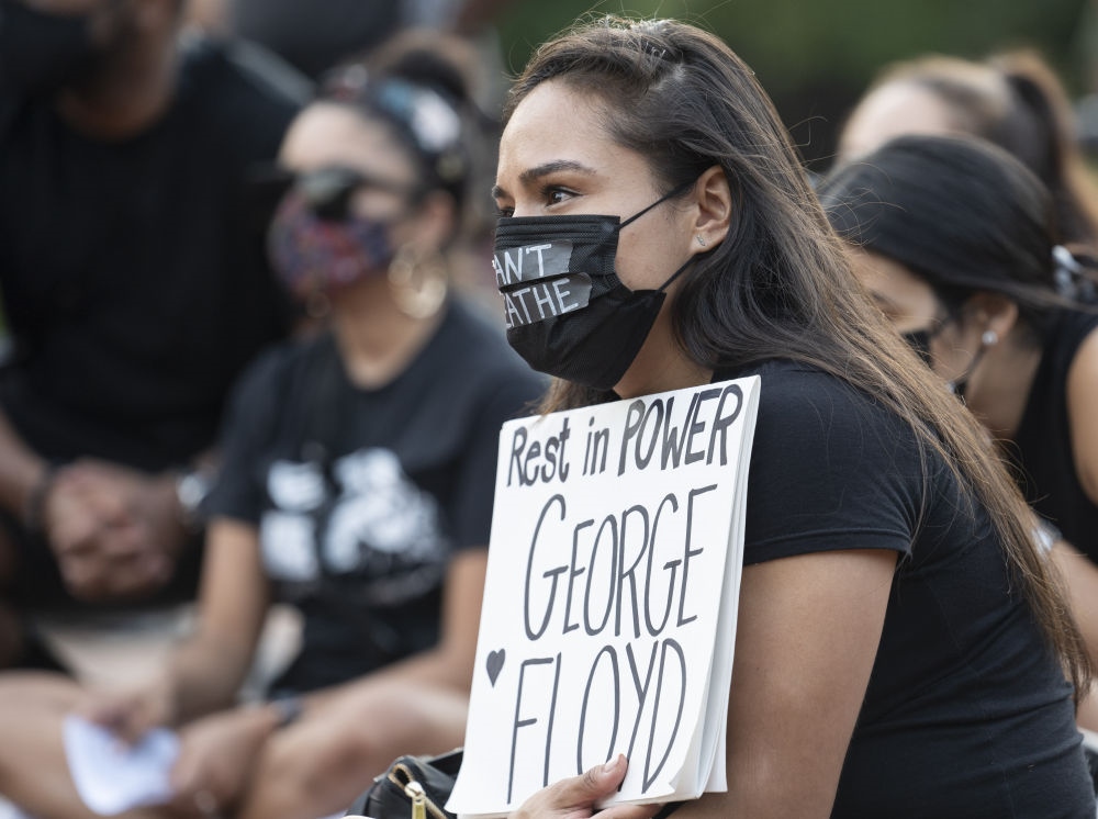 5月25日,人們在美國華盛頓白宮附近參加悼念喬治·弗洛伊德的集會。當(dāng)日是非洲裔美國人弗洛伊德遭明尼蘇達州白人警察“跪頸”執(zhí)法致死一周年,美國多地舉行悼念活動。新華社記者劉杰攝