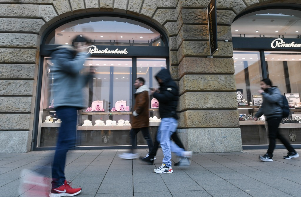 1月15日,行人從德國(guó)法蘭克福一家商場(chǎng)的櫥窗前走過(guò)。新華社記者逯陽(yáng)攝