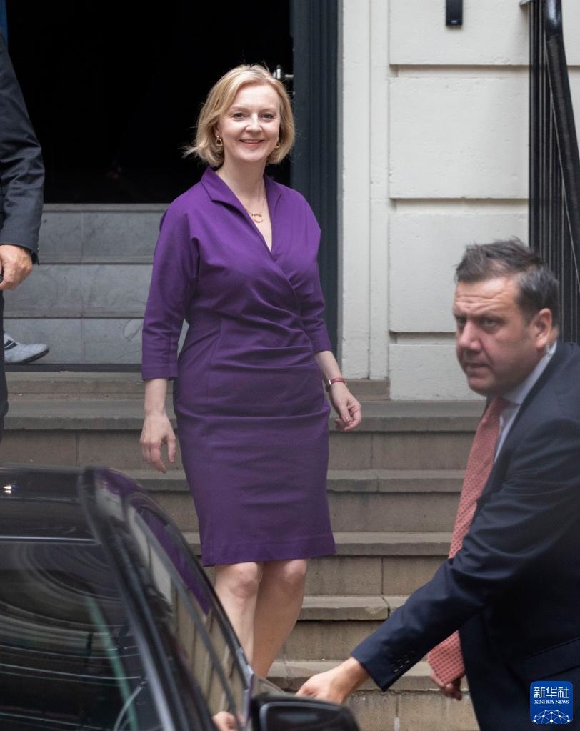 9月5日,在英國倫敦,當選英國保守黨新黨首的伊麗莎白·特拉斯離開保守黨總部。新華社發(fā)