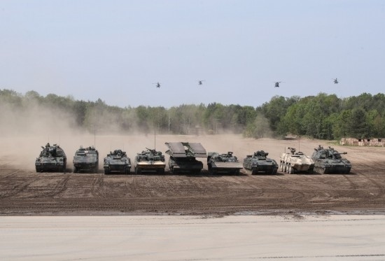 2019年5月20日,在德國蒙斯特,北約快速反應(yīng)部隊裝甲車及直升機參與演示。(新華社記者單宇琦攝)