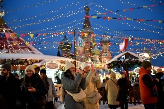 人們?cè)诙砹_斯首都莫斯科街頭拍照(2022年12月21日攝)。新華社發(fā)(亞歷山大攝)