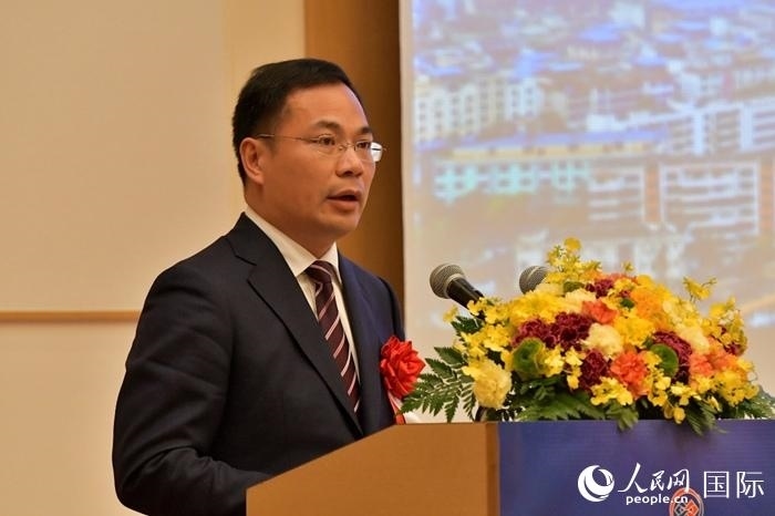 中國駐日本大使館經(jīng)濟商務(wù)公使代表申宇致辭。人民網(wǎng) 滕雪攝