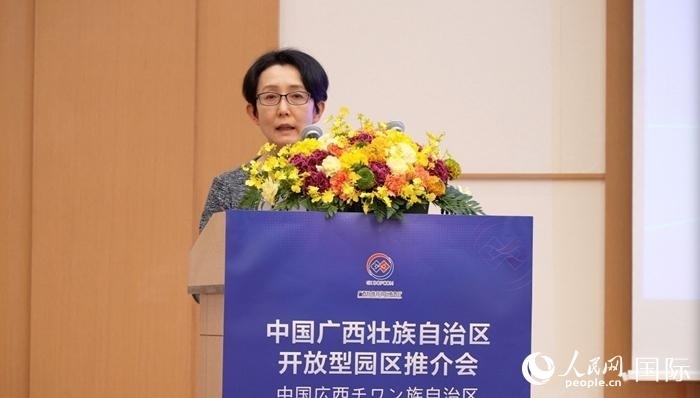 中國(廣西)自由貿(mào)易試驗區(qū)工作辦公室專職副主任白嵐做主題推介時,向日本經(jīng)濟產(chǎn)業(yè)界分享了廣西的四大發(fā)展機遇。