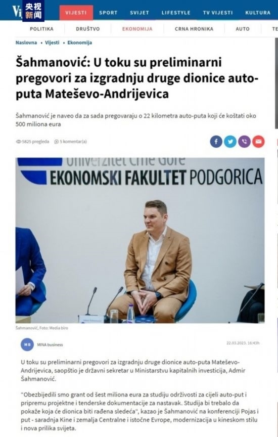 黑山資本投資部國務(wù)秘書沙赫馬諾維奇在發(fā)言中表示,近年來,在共建“一帶一路”倡議和中國-中東歐國家合作機(jī)制的推動下,中國同包括黑山在內(nèi)的各國共享發(fā)展機(jī)遇,兩國在交通基礎(chǔ)設(shè)施、新能源等領(lǐng)域合作成果豐碩。