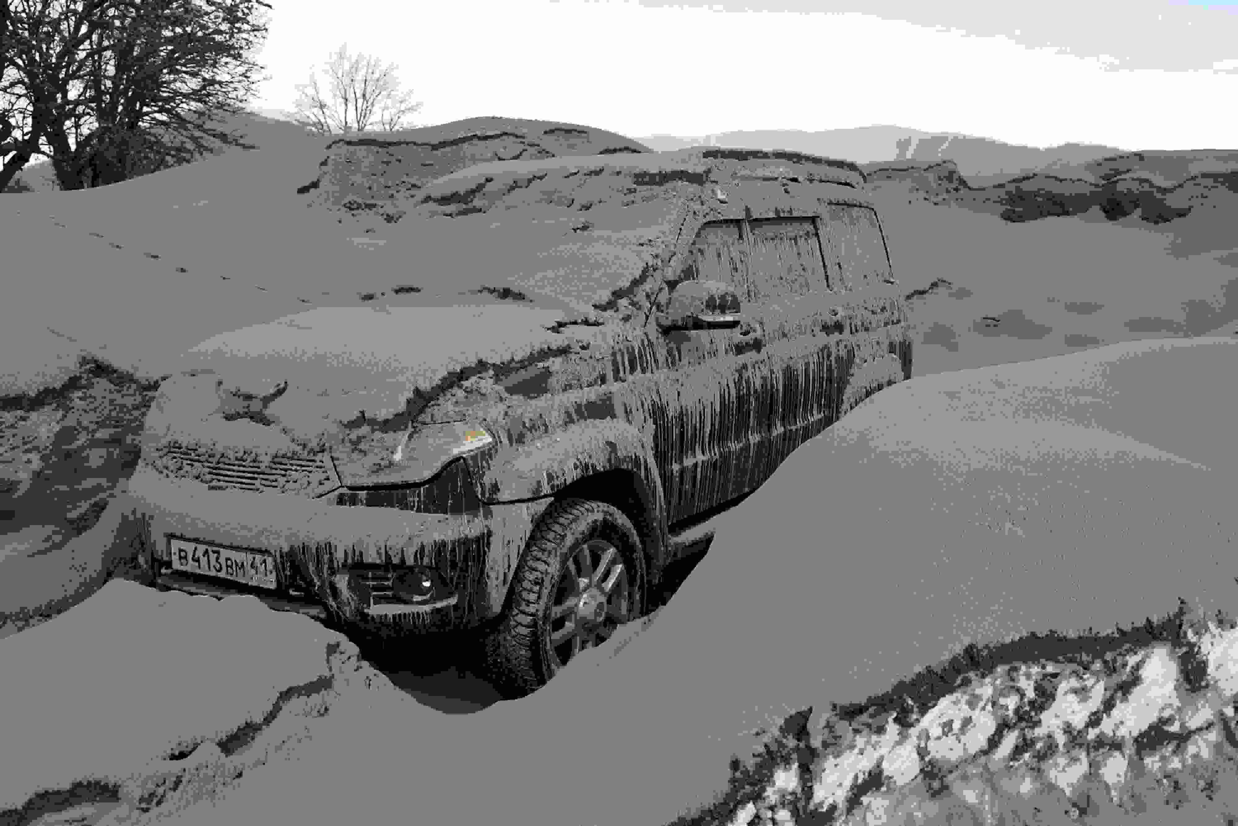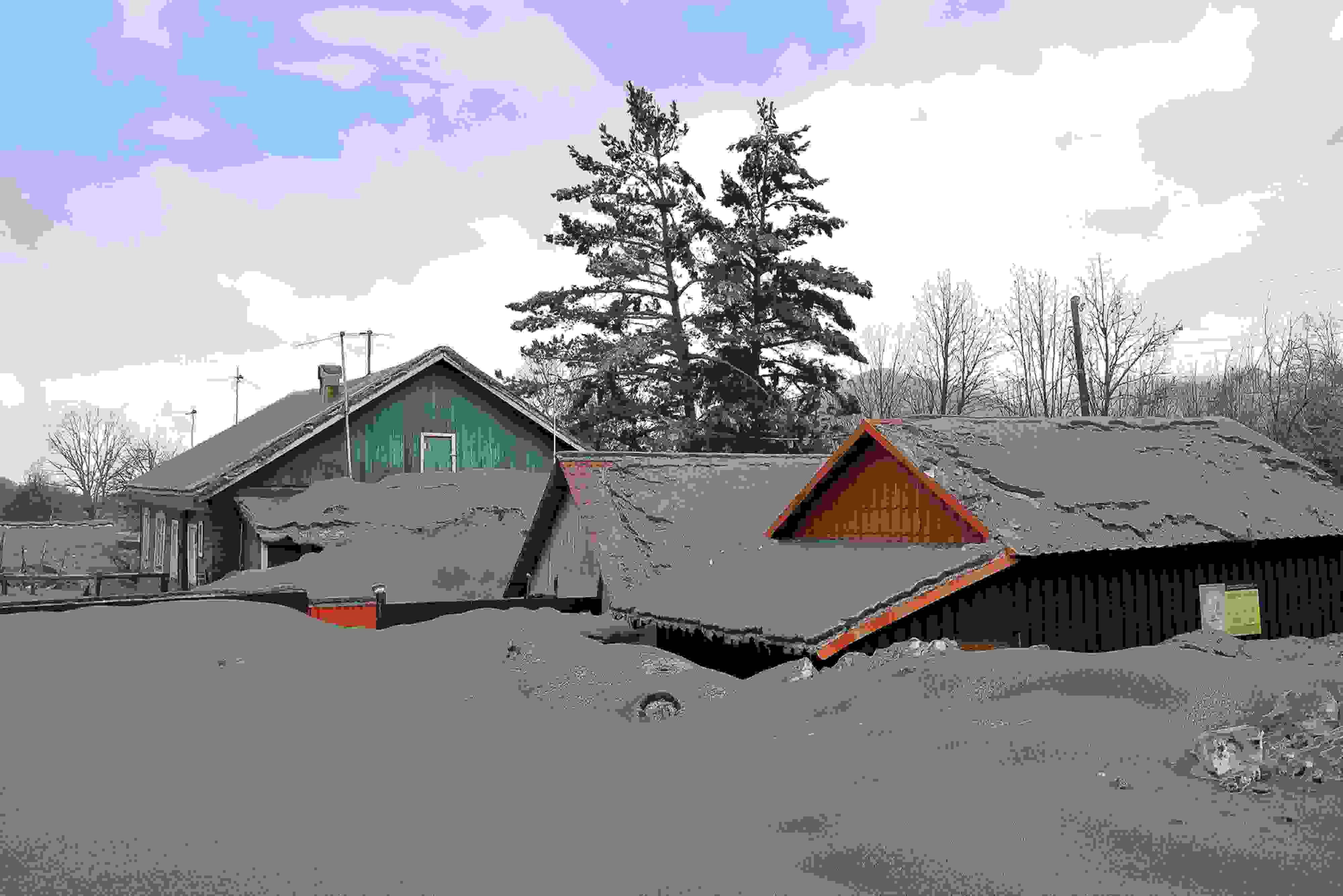 當?shù)貢r間2023年4月12日,俄羅斯勘察加半島,希韋盧奇火山噴發(fā)后,周邊村莊被火山灰覆蓋。希韋盧奇是堪察加半島最大的火山之一,海拔3283米。 視覺中國