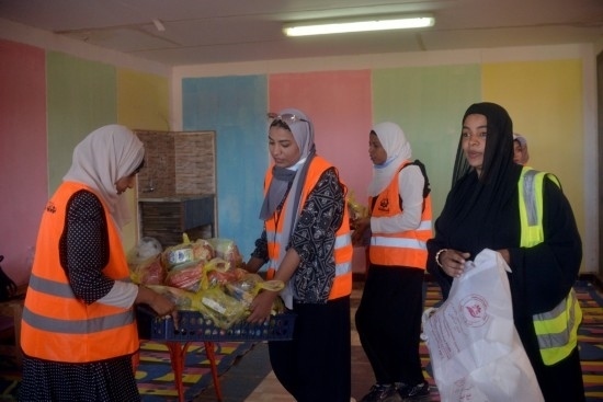 5月2日,在埃及南部阿斯旺省,工作人員為逃離蘇丹進入埃及的難民準(zhǔn)備救濟包裹。新華社發(fā)(拉德萬攝)