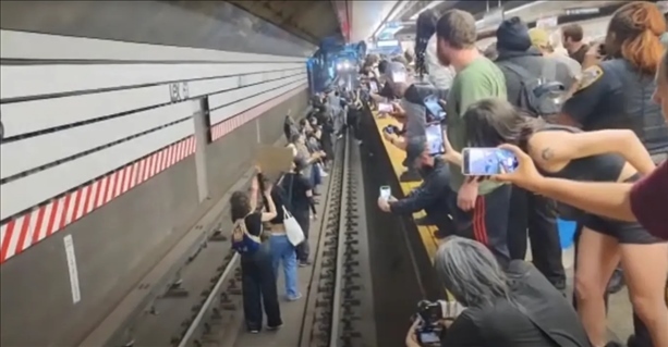 《紐約郵報》稱,視頻顯示,當?shù)貢r間6日晚6時左右,在紐約市一地鐵站,多名抗議示威者跳入地鐵軌道,將迎面駛來的地鐵逼停??棺h者高呼“沒有正義,沒有和平”,而在背景聲音中,可以聽到警察試圖呼吁維持秩序。這群示威者呼吁為尼利討回公道。這一危險舉動導致該地鐵站暫時停運。
