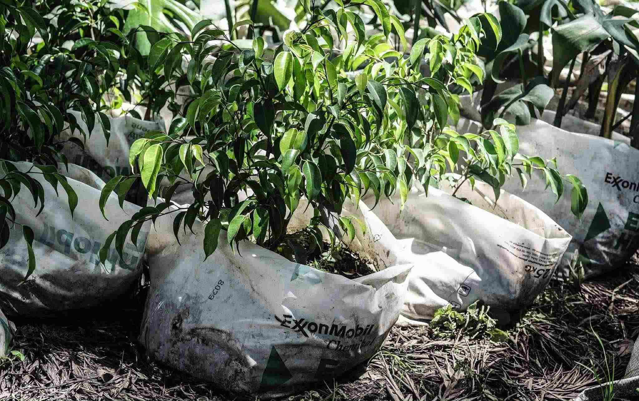 當(dāng)?shù)貢r(shí)間2023年5月7日,肯尼亞納庫(kù)魯?shù)拿缙岳?,??松梨诎b袋包裹著一棵樹(shù)苗。隨著世界充斥著塑料廢物,政府間談判委員會(huì)(INC)內(nèi)塑料條約的支持者正在倡導(dǎo)一項(xiàng)具有法律約束力的文書(shū),減少石化工業(yè)生產(chǎn)的原生塑料。