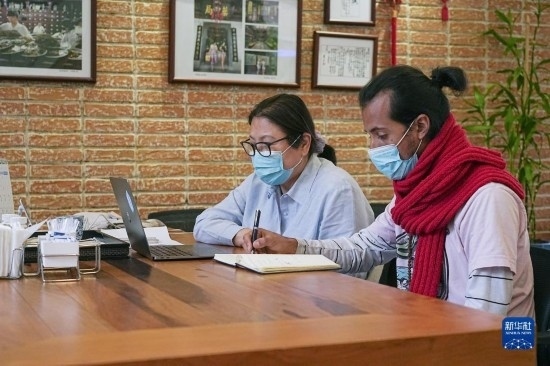 7月20日,在匈牙利布達佩斯匈牙利岐黃中醫(yī)藥中心,中心負(fù)責(zé)人陳震(右)和甘肅外派專家張海芳一同討論。新華社發(fā)(弗爾季·奧蒂洛攝)