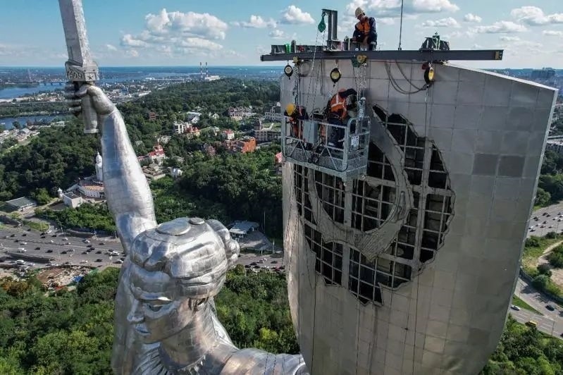 8月5日,用以替換烏克蘭首都基輔“祖國母親”雕像上的蘇聯國徽的配件運抵基輔,在原蘇聯國徽的位置上的新標志是烏克蘭國徽“三叉戟”。