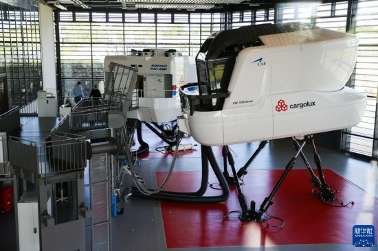 8月1日,工作人員在盧森堡貨航總部的飛行模擬器區(qū)域工作。新華社記者 鄭煥松 攝