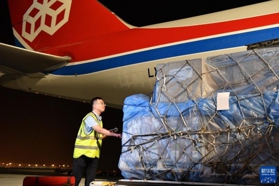 這是2020年3月22日,運(yùn)送防疫物資的鄭州—盧森堡航線貨機(jī)在中國(guó)鄭州新鄭國(guó)際機(jī)場(chǎng)裝機(jī)準(zhǔn)備起飛的資料照片。新華社記者 李嘉南 攝