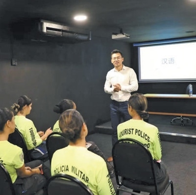 為更好地保障中國游客安全,里約旅游警察局和中國駐里約總領事館合作推出的里約旅游警察中文培訓班日前正式開班。該培訓班分為10個課時,由里約天主教大學孔子學院的教師授課。當?shù)鼐瘑T丹妮爾·克雷斯說,中國游客將為推動里約經濟發(fā)展發(fā)揮重要作用,“我愿與同事一起為保障游客安全、促進巴中人民友好往來貢獻力量。”