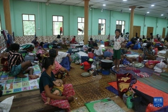 8月12日,人們在緬甸勃固省一處洪災(zāi)安置點(diǎn)休息。新華社發(fā)(苗覺梭攝)