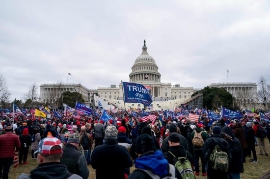 2021年1月6日,在美國首都華盛頓的國會大廈前,時任總統(tǒng)特朗普的支持者舉行示威游行。部分示威者沖擊國會大廈,導致國會參眾兩院認證總統(tǒng)選舉結果的聯(lián)席會議中斷數(shù)小時。事件造成4名示威者和1名國會警察死亡。新華社記者劉杰攝