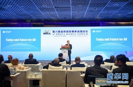 8月19日,國(guó)家能源集團(tuán)董事王敏在第六屆金磚國(guó)家媒體高端論壇智庫(kù)報(bào)告發(fā)布暨研討會(huì)上進(jìn)行主旨發(fā)言。新華社記者 李亞輝 攝
