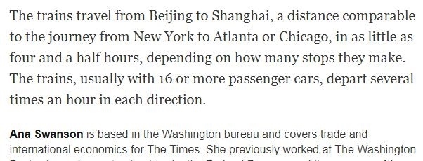但是,《紐約時報》隨后刪除了這篇報道中有關(guān)中美列車速度對比的內(nèi)容。