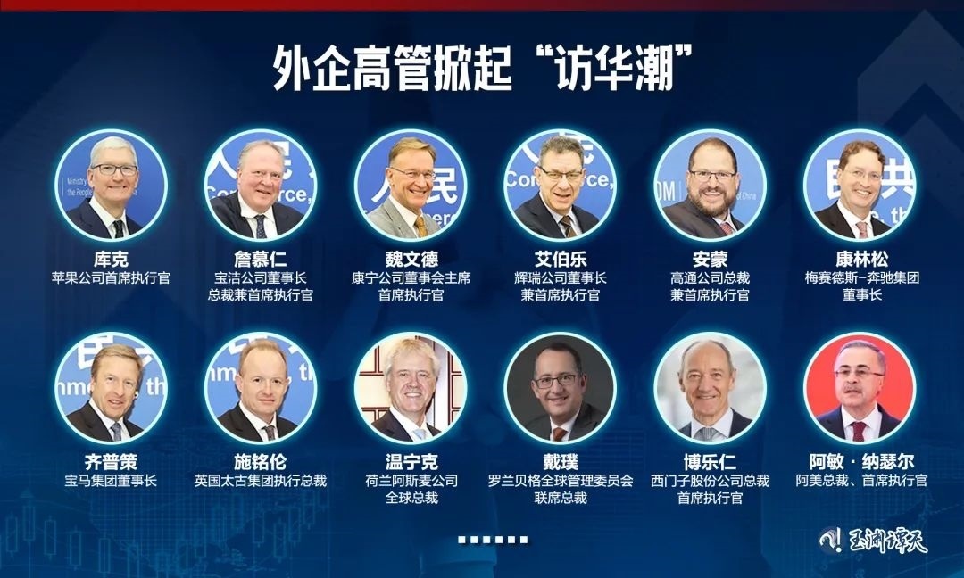 所以,我們看到,今年以來,包括特斯拉、大眾汽車、星巴克、高通、寶馬等在內的一百多位世界500強企業(yè)和行業(yè)龍頭企業(yè)的負責人紛紛訪問中國。