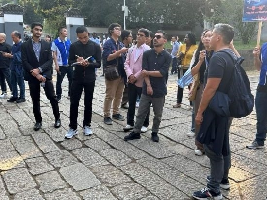 10月24日,2023“一帶一路”媒體合作論壇聯(lián)合采訪團參訪岳麓書院。(本報記者 劉書文攝)