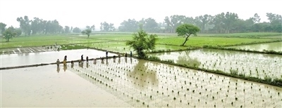 時值正午,驕陽似火。在拉合爾西南郊的一處雜交水稻試驗田里,來自中國湖南的農(nóng)業(yè)專家龍春久正在同當?shù)剞r(nóng)民和技術(shù)員一起進行雜交水稻選種試驗。頭戴草帽,褲腳挽至膝蓋,龍春久在泥濘的水田里彎腰插秧,汗水從他黝黑的面龐上淌下。