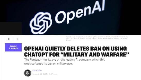“在人工智能系統(tǒng)正被用于針對加沙地區(qū)的平民時(shí),OpenAI決定將禁止軍事和戰(zhàn)爭用途文字從其使用條款中移除,是值得關(guān)注的”,一位專家對“攔截者”網(wǎng)站這樣說道。
