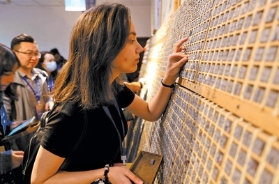 2023年10月,在山東省臨沂市沂南縣銅井鎮(zhèn)竹泉村,外國留學(xué)生體驗活字印刷,感受中國傳統(tǒng)文化魅力。王彥冰攝(新華社發(fā))