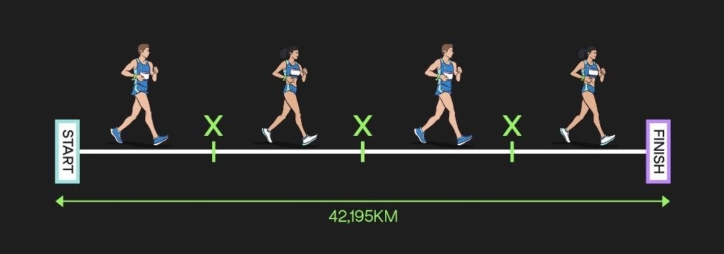 同時補(bǔ)充能量膠、水分、電解質(zhì)等補(bǔ)給