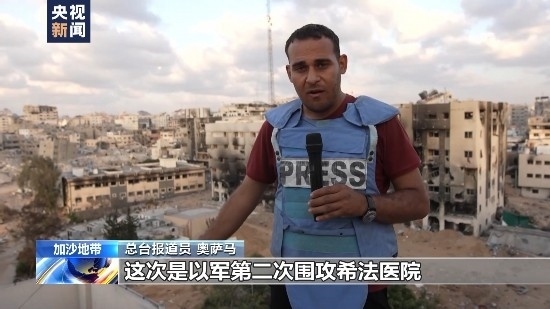 總臺(tái)報(bào)道員 奧薩馬:我身后就是加沙城的希法醫(yī)院,此前以色列軍隊(duì)襲擊了這里,目前該醫(yī)院已經(jīng)停止服務(wù)。以軍此前的襲擊造成大量民眾身亡,還有一些人被捕,醫(yī)院設(shè)施被毀并發(fā)生火災(zāi),之后加沙地帶衛(wèi)生部門(mén)宣布,該醫(yī)院完全停止服務(wù)。我們注意到,這里現(xiàn)在沒(méi)有醫(yī)務(wù)人員,沒(méi)有手術(shù)室,也無(wú)法提供任何類型的醫(yī)療服務(wù)。