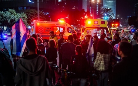當(dāng)?shù)貢r(shí)間6日晚,在特拉維夫舉行的反政府集會(huì)上,一輛汽車(chē)突然沖撞人群,造成5名抗議者受傷 圖源:《以色列時(shí)報(bào)》