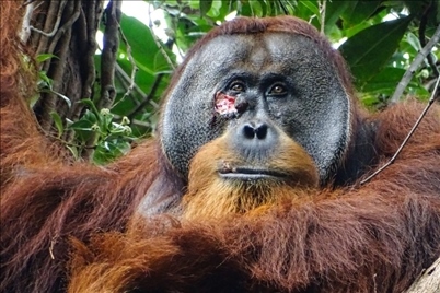 《衛(wèi)報》稱,根據報告,研究小組在追蹤一只被命名為“拉庫斯”的雄性蘇門答臘猩猩時,發(fā)現(xiàn)它的面部有一道新傷,這可能是與另一只雄性猩猩爭斗的結果。3天后,研究人員看到 拉庫斯正在咀嚼一種藤本攀援植物的莖葉。報告寫道,“在拉庫斯開始采食藤本植物13分鐘后,它開始咀嚼葉子,但沒有吞咽,而是用手指將口中的植物汁液直接涂抹在面部傷口上。