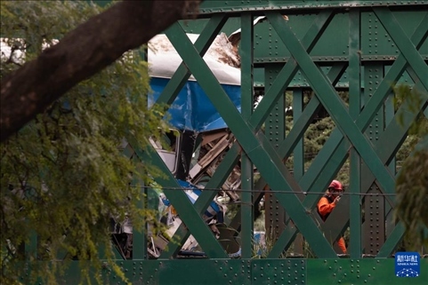 5月10日,救援人員在阿根廷首都布宜諾斯艾利斯火車相撞事故現(xiàn)場(chǎng)工作。新華社發(fā)(馬丁·薩巴拉攝)
