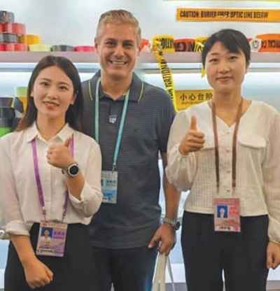 梅洛(中)在第135屆廣交會(huì)現(xiàn)場。受訪者供圖