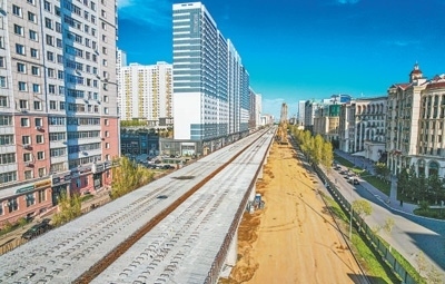 正在建設中的輕軌118車站連通著阿斯塔納新火車站,建成后將實現(xiàn)輕軌與新火車站便捷換乘。