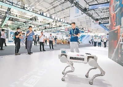 6月20日,中國參展商在2024世界智能產(chǎn)業(yè)博覽會現(xiàn)場演示一款機(jī)器人。新華社記者 孫凡越攝