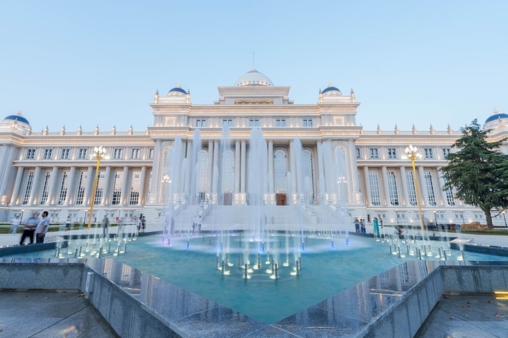 ↑位于杜尚別的塔吉克斯坦議會大樓。 新華社記者 周荻瀟 攝